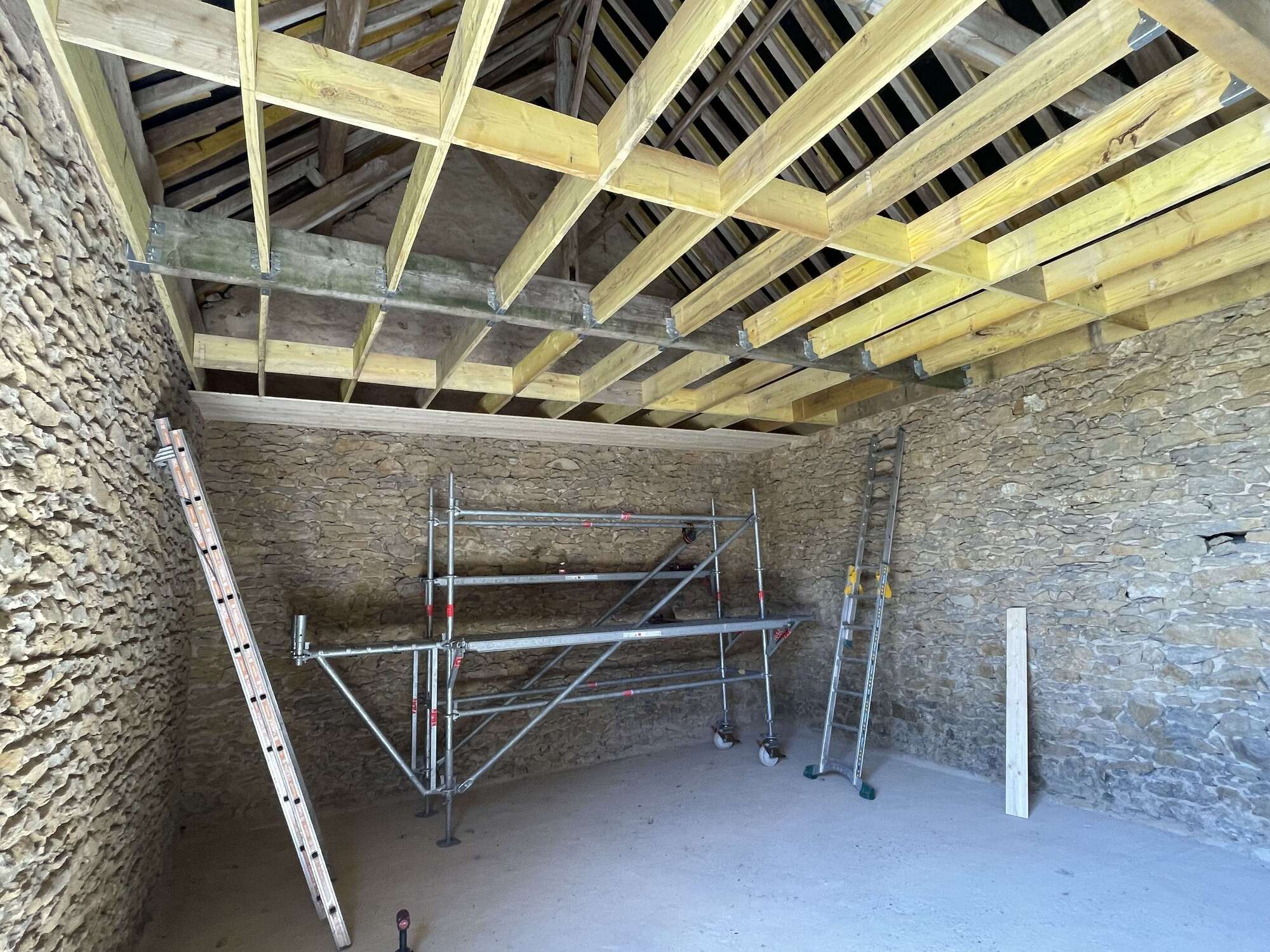 Une fois le projet défini, nous effectuons une prise de côtes sur place, grâce à des outils traditionnels, tels que le niveau, la règle et le fil à plomb, pour nous assurer que les dimensions sont exactes et les angles parfaits. Cette étape est cruciale, car une mauvaise prise de côte peut nuire à la qualité de l'ensemble de la structure, notamment lors de la phase de levage.